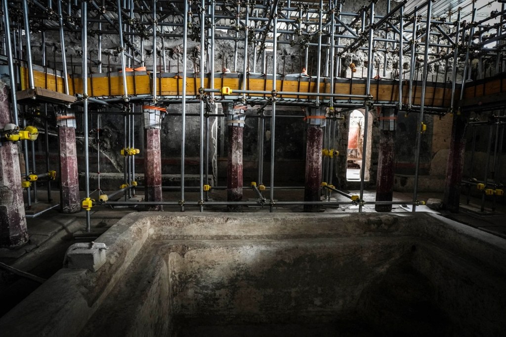 Duży kompleks term odkryto podczas prac wykopaliskowych na terenie starożytnych Pompejów na południu Włoch - poinformowała agencja Ansa. Termy przylegające do sali bankietowej znajdowały się w prywatnym domu na obszarze, gdzie prowadzone są obecnie roboty.