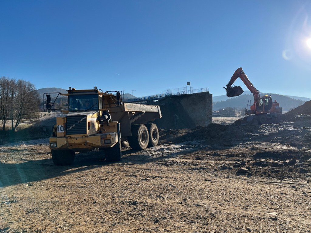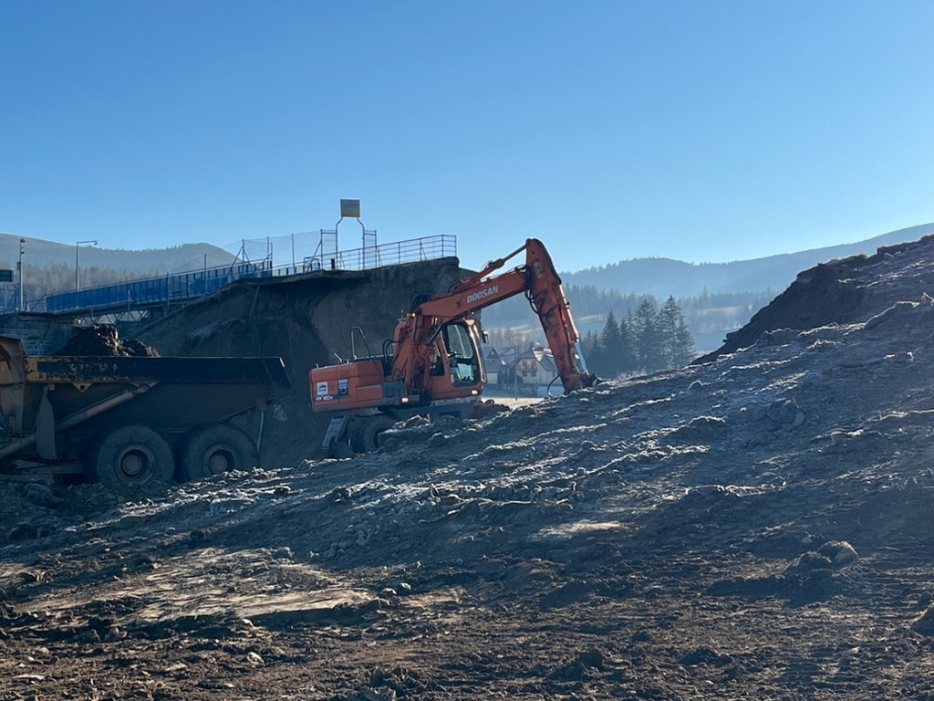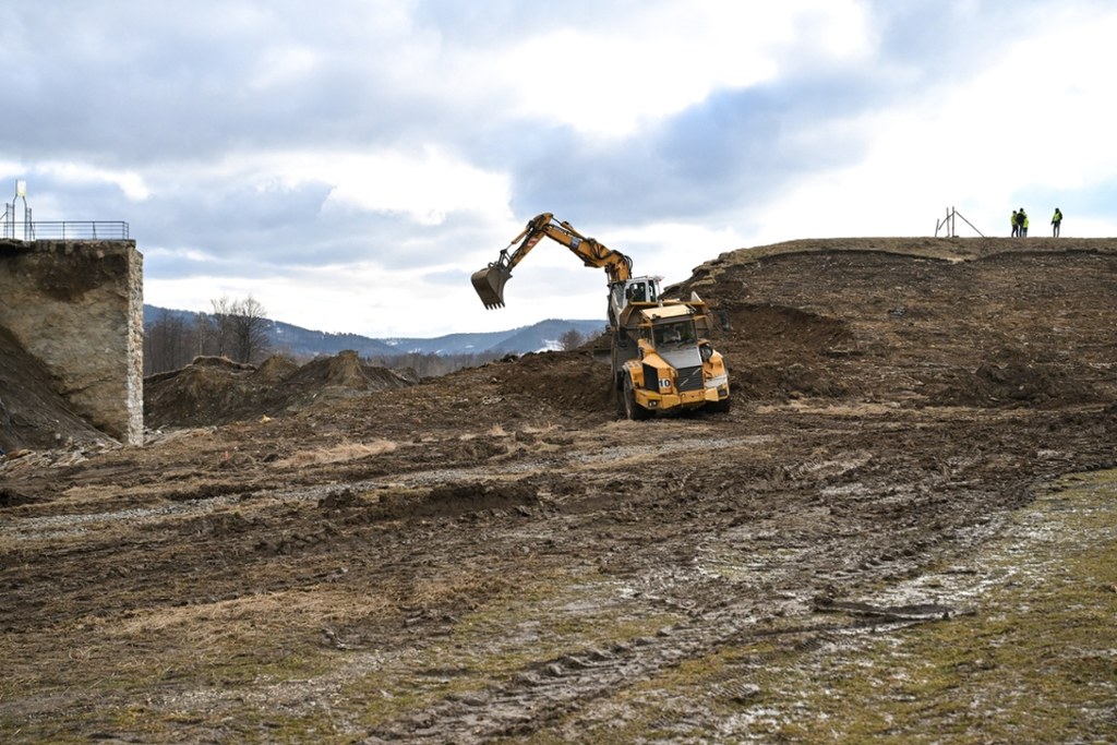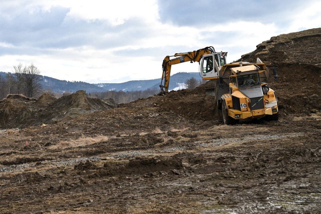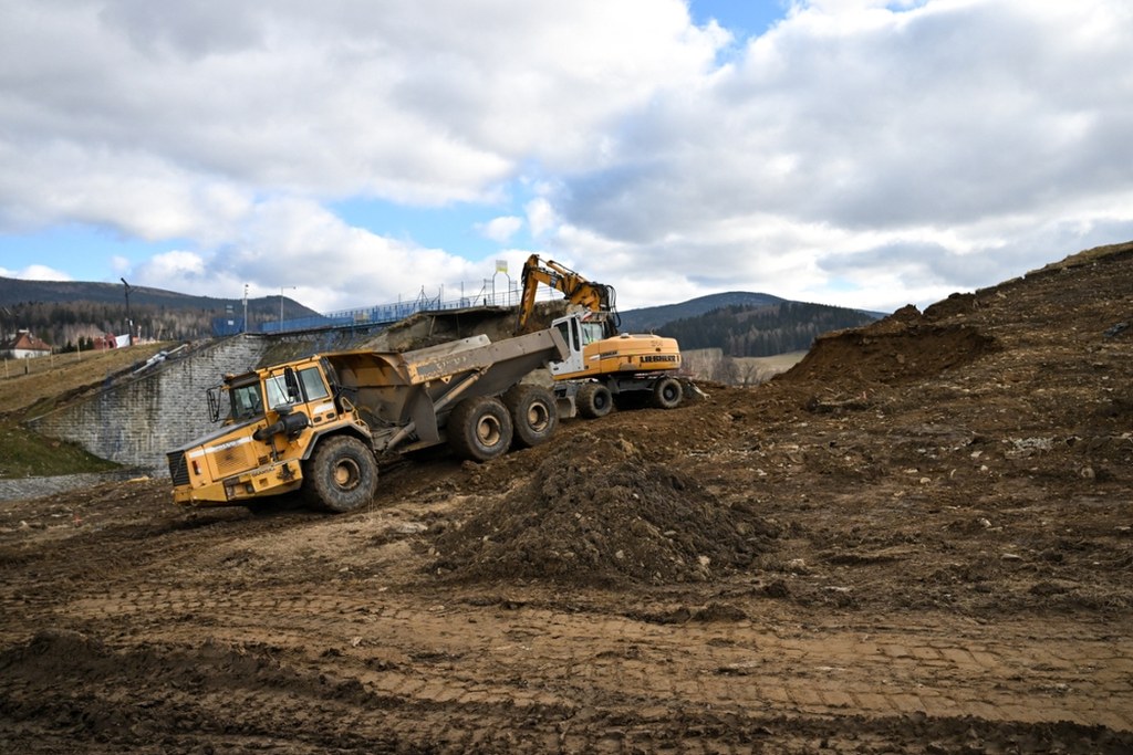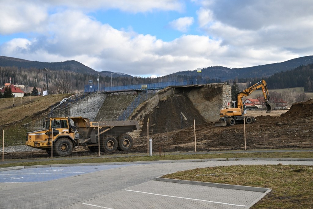Rozpoczęły się prace w Stroniu Śląskim. Łatanie wału przy zaporze to jednak rozwiązanie tymczasowe. / fot. Martyna Czerwińska / RMF FM
