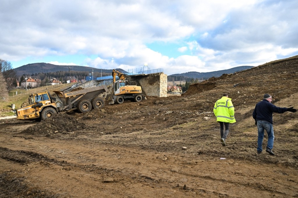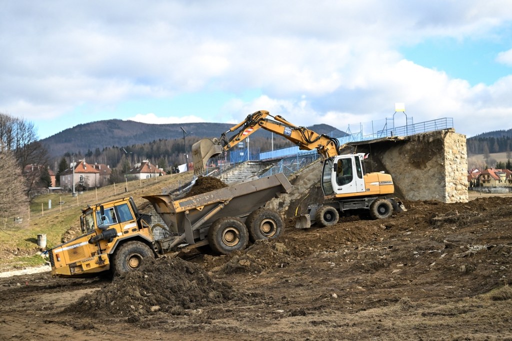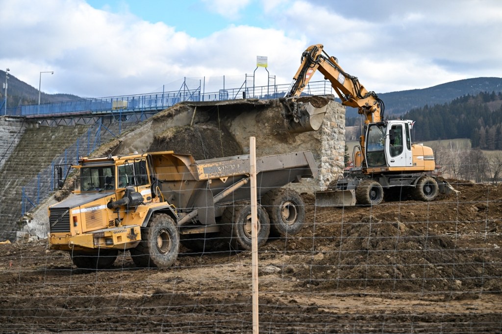 Ruszyły prace przy odbudowie tamy w Stroniu Śląskim na Dolnym Śląsku. / fot. Maciej Kulczyński / PAP