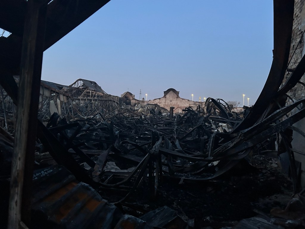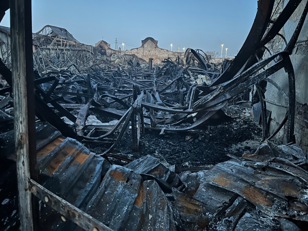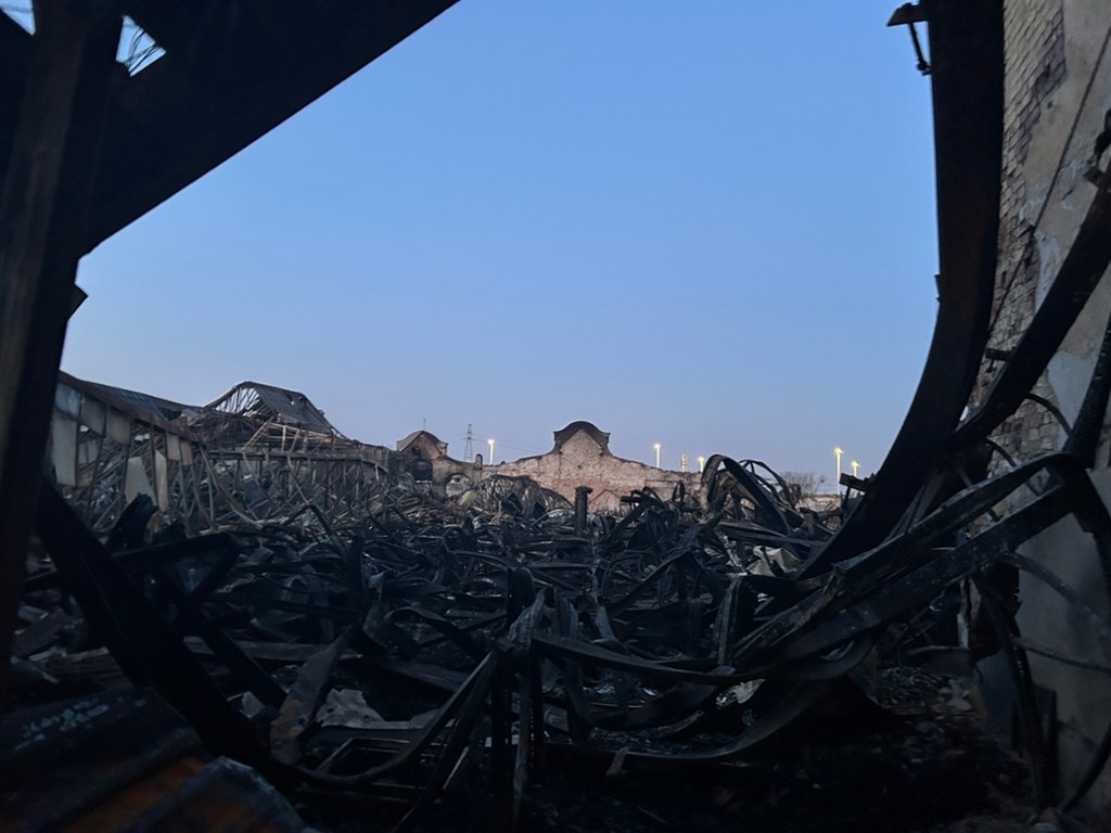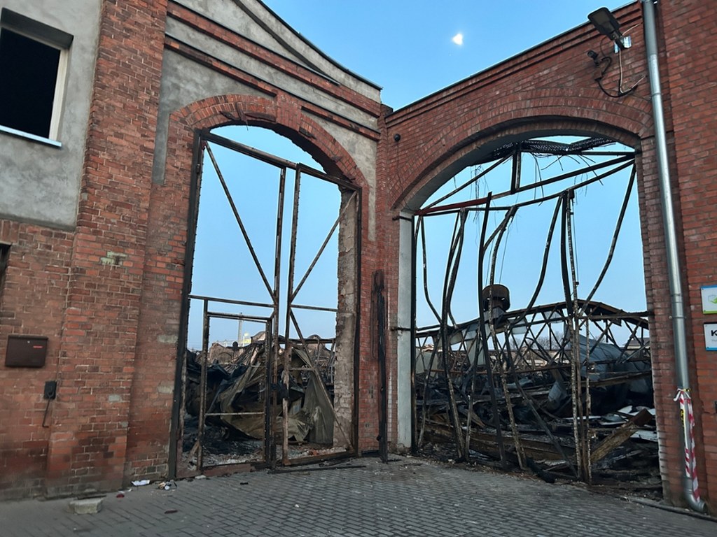 Krajobraz po wielkim pożarze hali w Gdańsku. Galeria