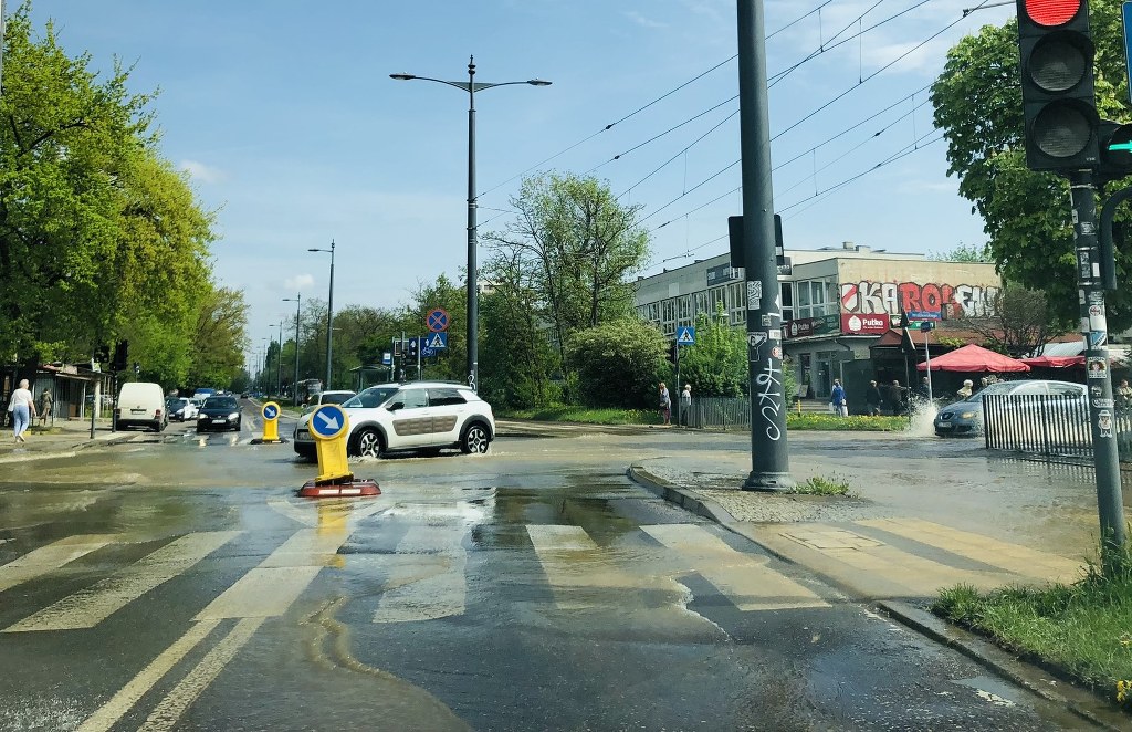 Poważna awaria wodociągowa w Łodzi. W rejonie skrzyżowania ulic Wróblewskiego i Bratysławskiej pękła rura o średnicy metra.