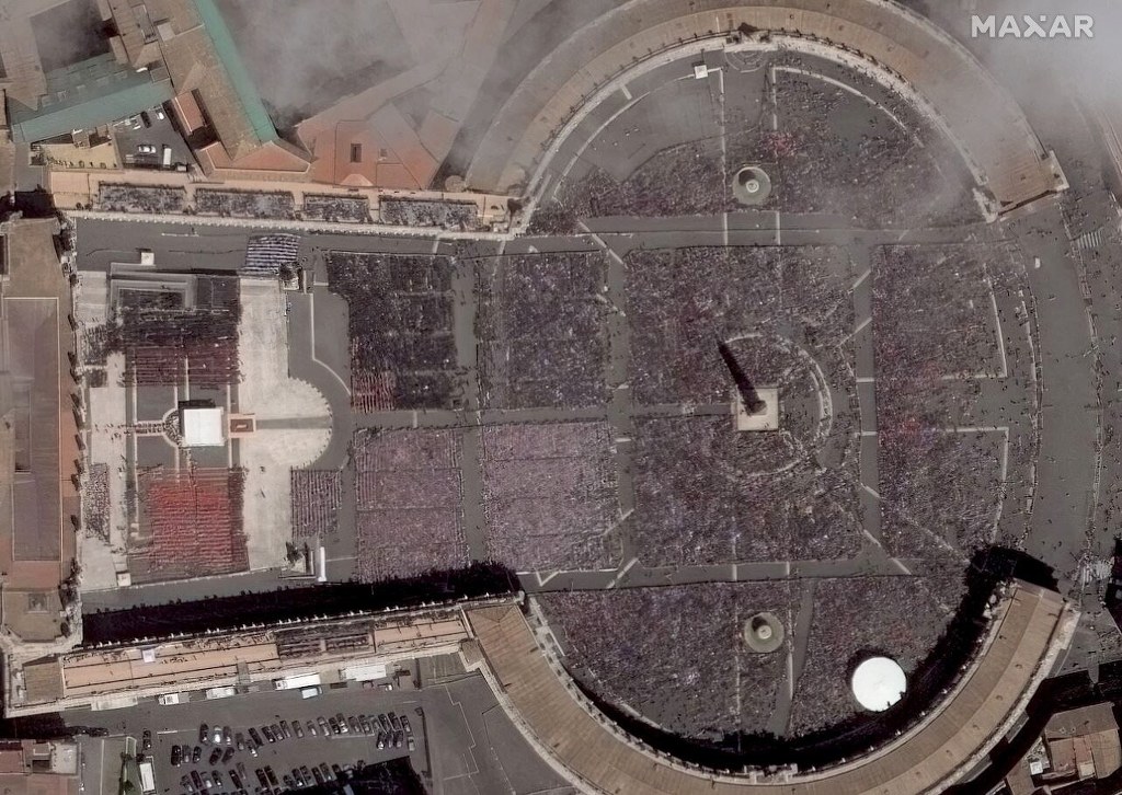 Zdjęcie Placu Świętego Piotra z satelity / fot. SATELLITE IMAGE 2025 MAXAR TECHNOLOGIES / PAP/EPA
