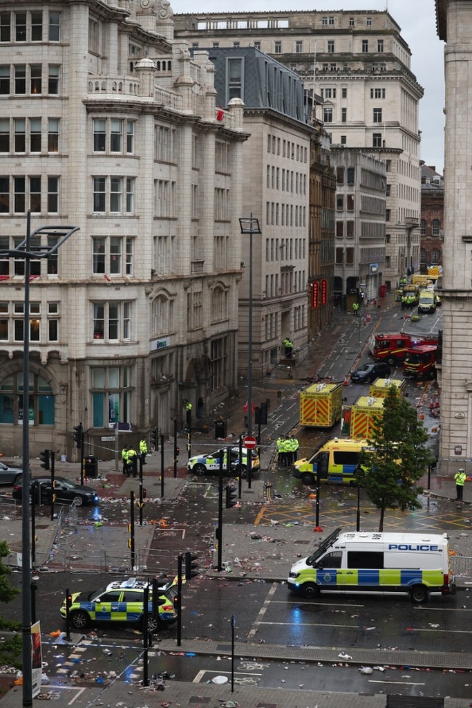 Tysiące ludzi świętowały w centrum miasta zdobycie przez klub FC Liverpool mistrzostwa w Premier League. Według relacji mediów i świadków auto wjechało w tłum na ulicy, po czym zatrzymało się / fot. PAP/EPA/ADAM VAUGHAN / PAP/EPA