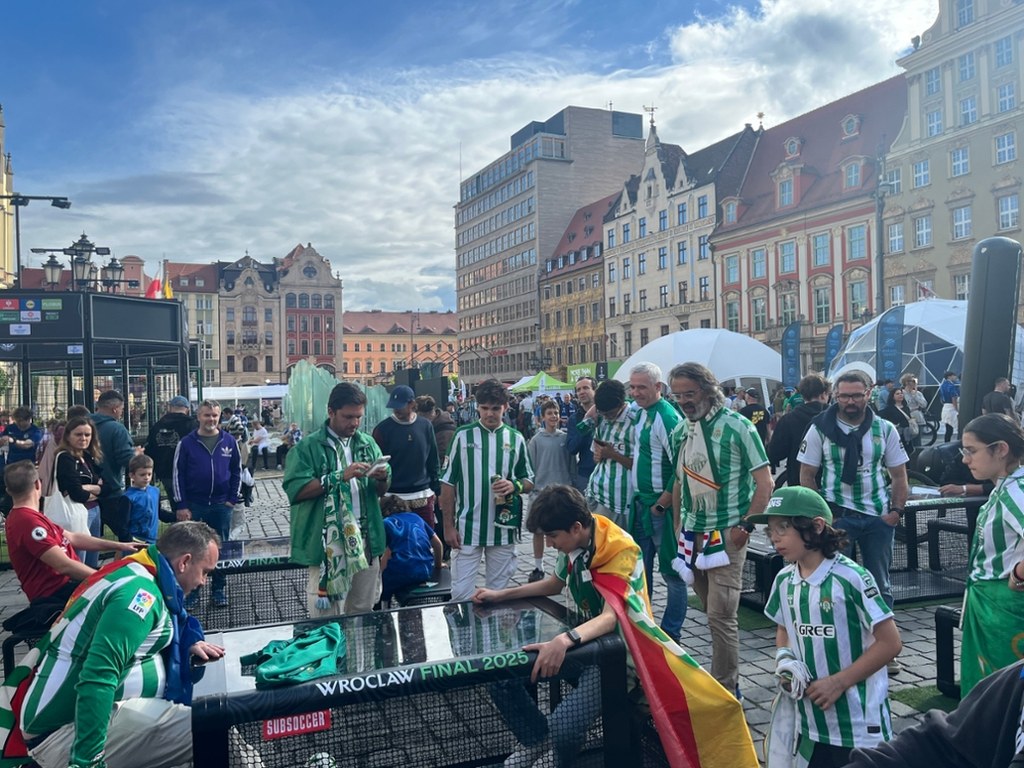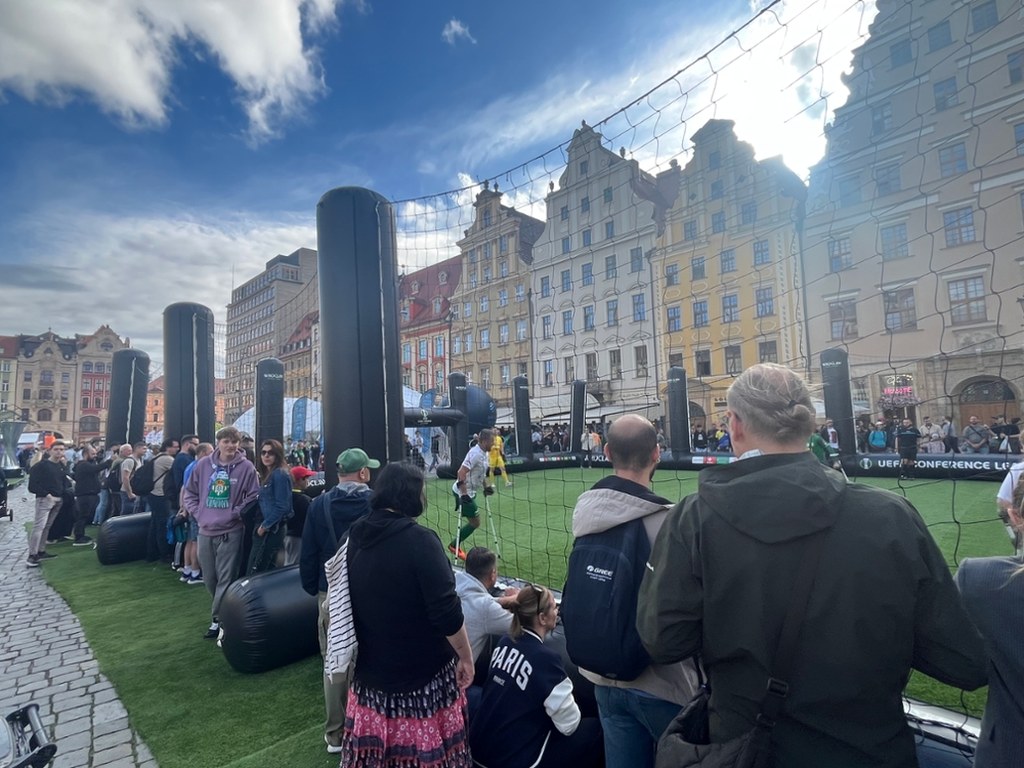 Kibice we Wrocławiu przed meczem finału Ligi Konferencji UEFA.