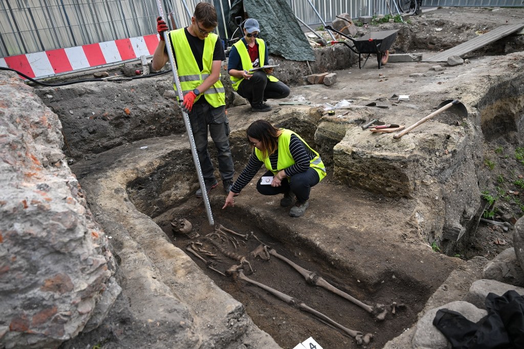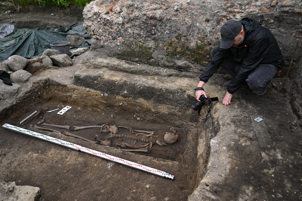 Archeolodzy w Gdańsku na początku lipca odkryli pochodzącą z XIII wieku wapienną płytą nagrobną z wizerunkiem rycerza. Teraz dokonali kolejnego zaskakującego odkrycia – pod płytą, odnaleziono kompletny szkielet ludzki. Według wstępnych szacunków, zmarły miał około 180 centymetrów wzrostu, co w tamtych czasach było ponadprzeciętnym wynikiem.