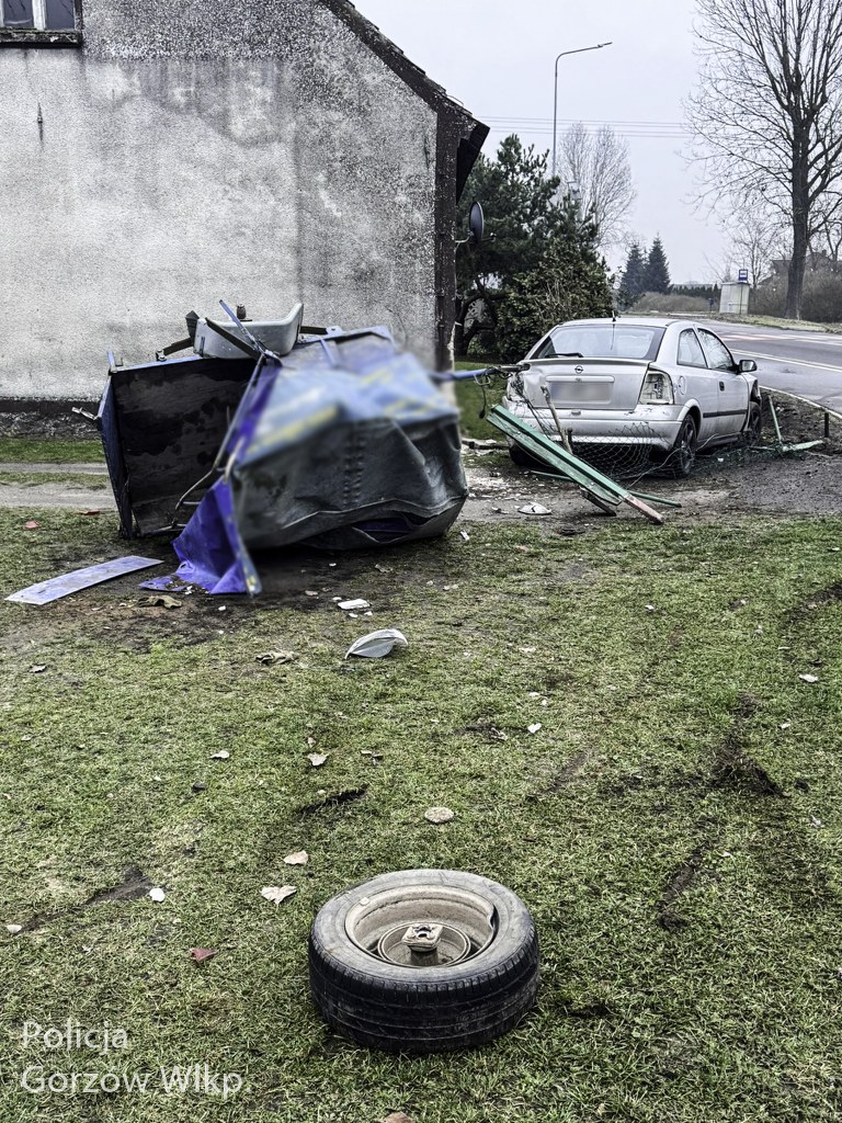 Wypadek w Deszcznie. Opel z metalowymi rurami uderzył w dom