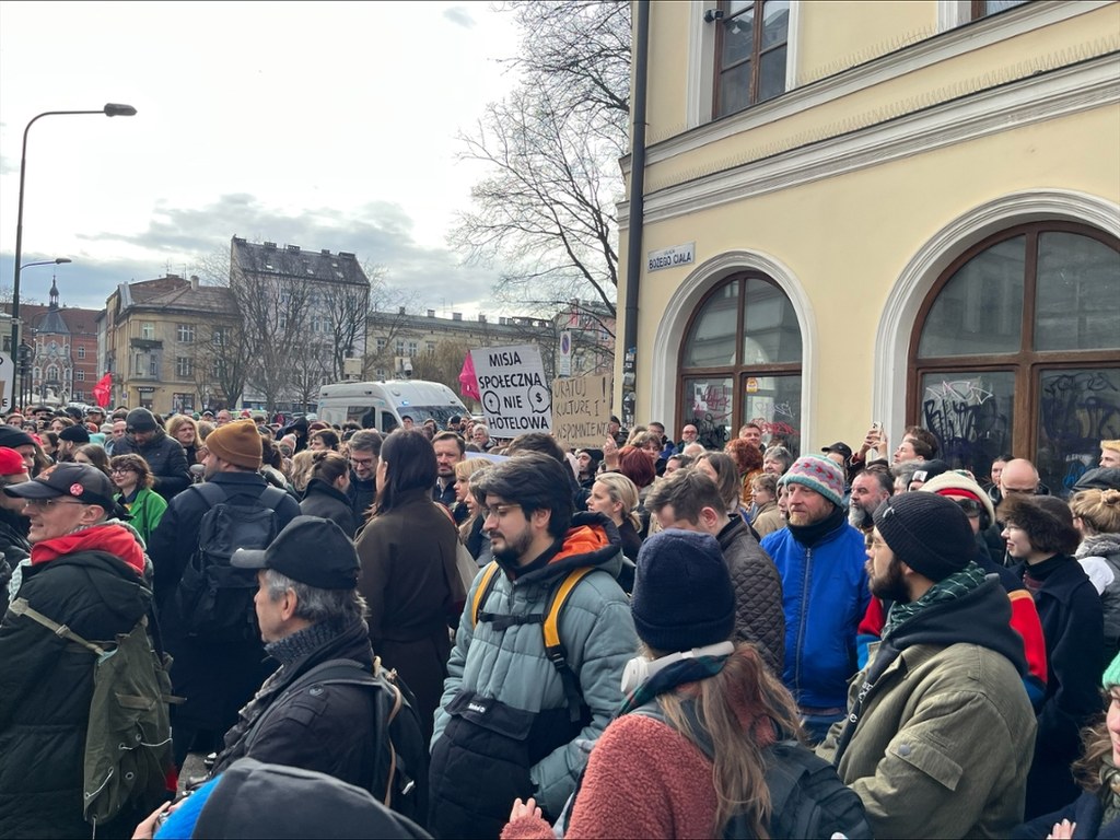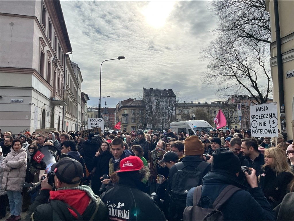 Protest mieszkańców w Krakowie. Setki osób zgromadziły się w niedzielę, by wyrazić swój sprzeciw wobec planowanych zmian urbanistycznym w sercu Kazimierza.