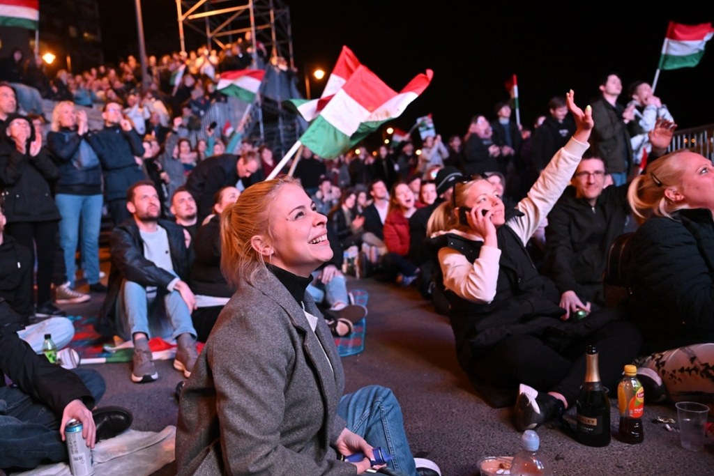 Radość zwolenników Petera Magyara po zwycięstwie wyborczym