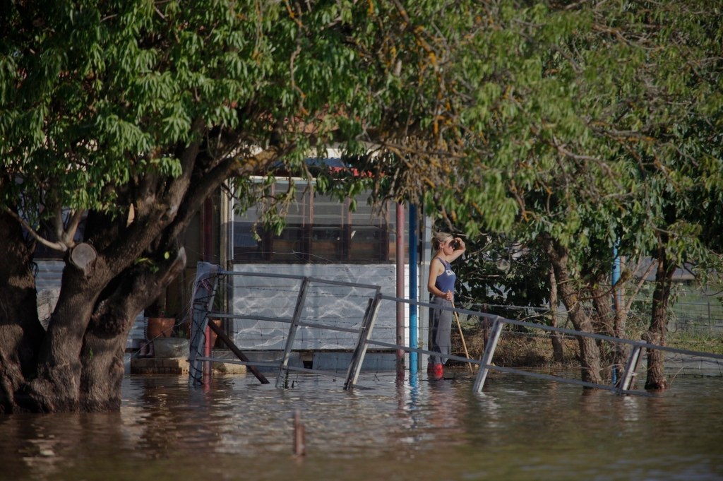 Mieszkanka Wagga Wagga obserwuje zalany teren. / PAP/EPA