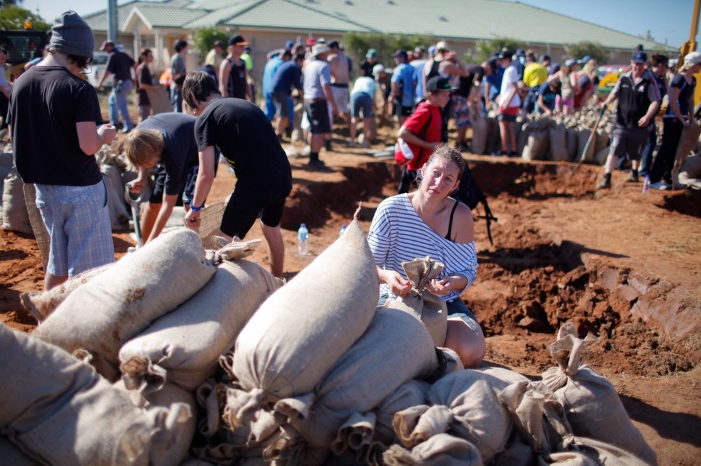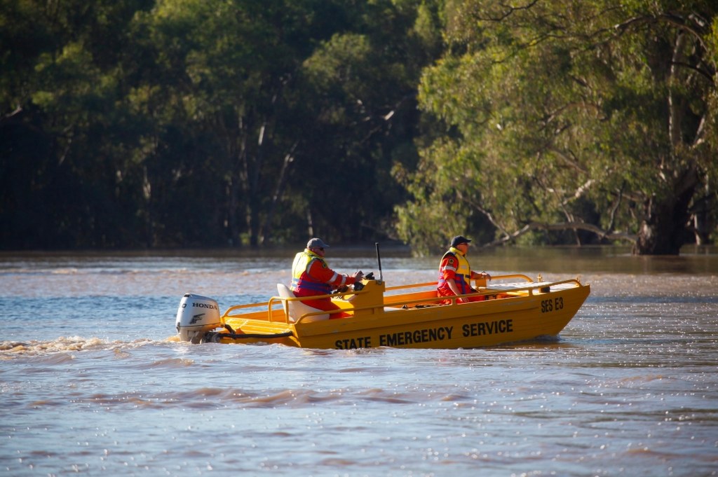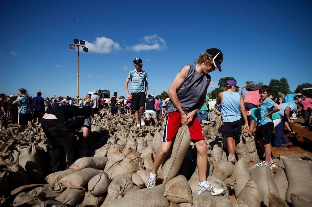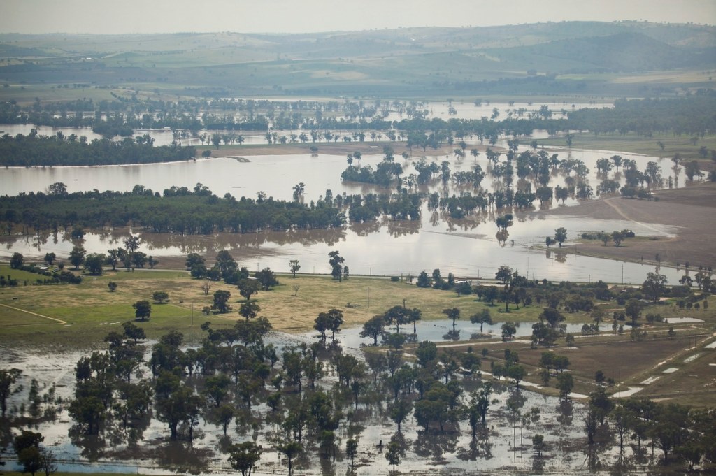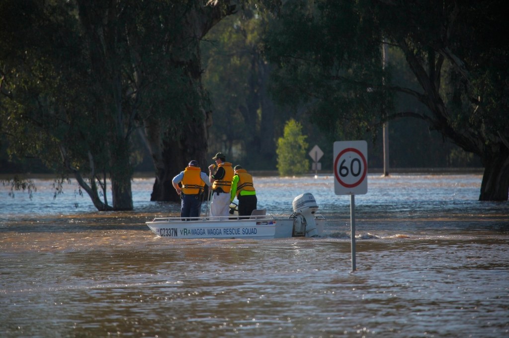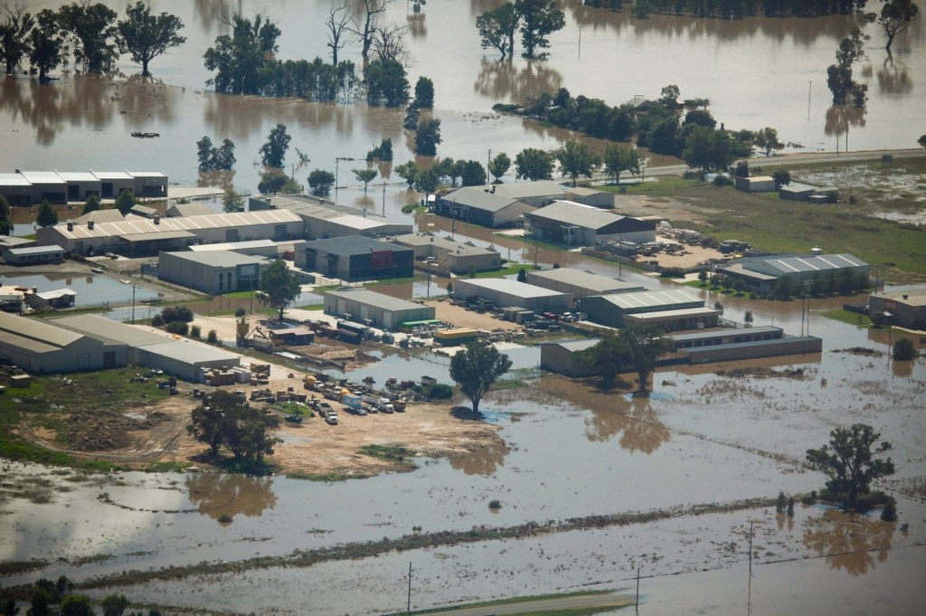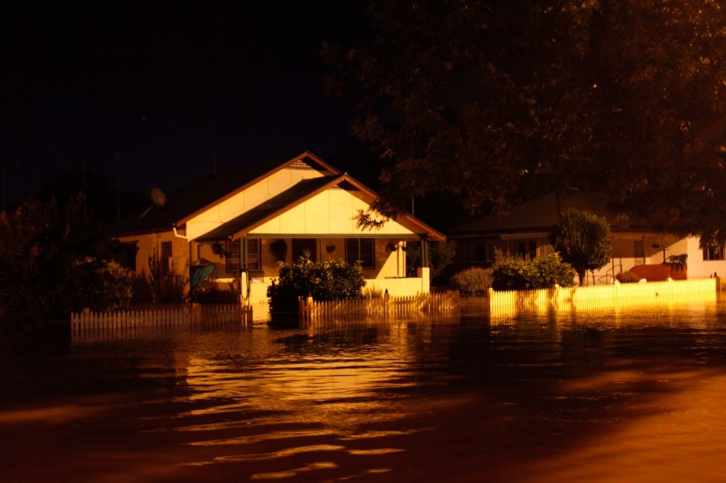 Powodzianie i zalane domy w Gundagai. / PAP/EPA