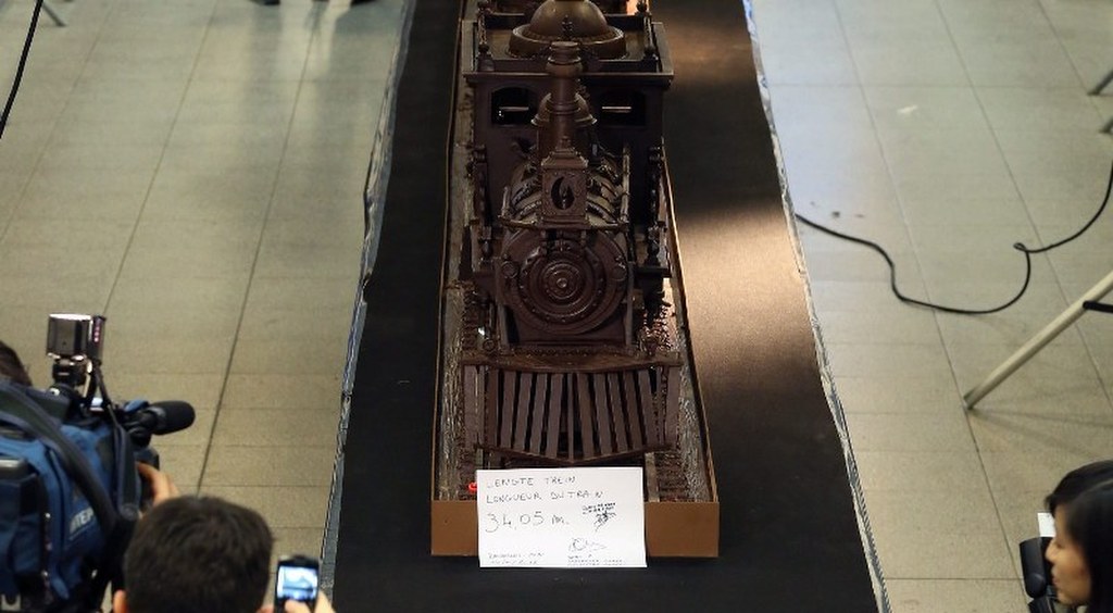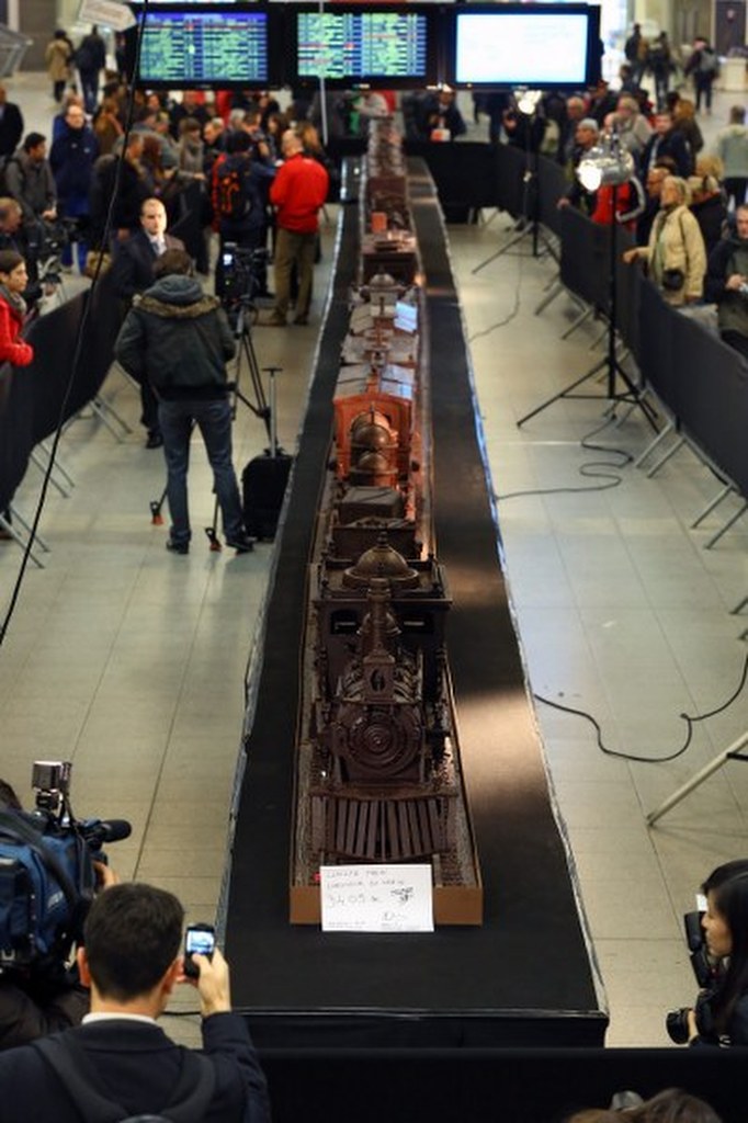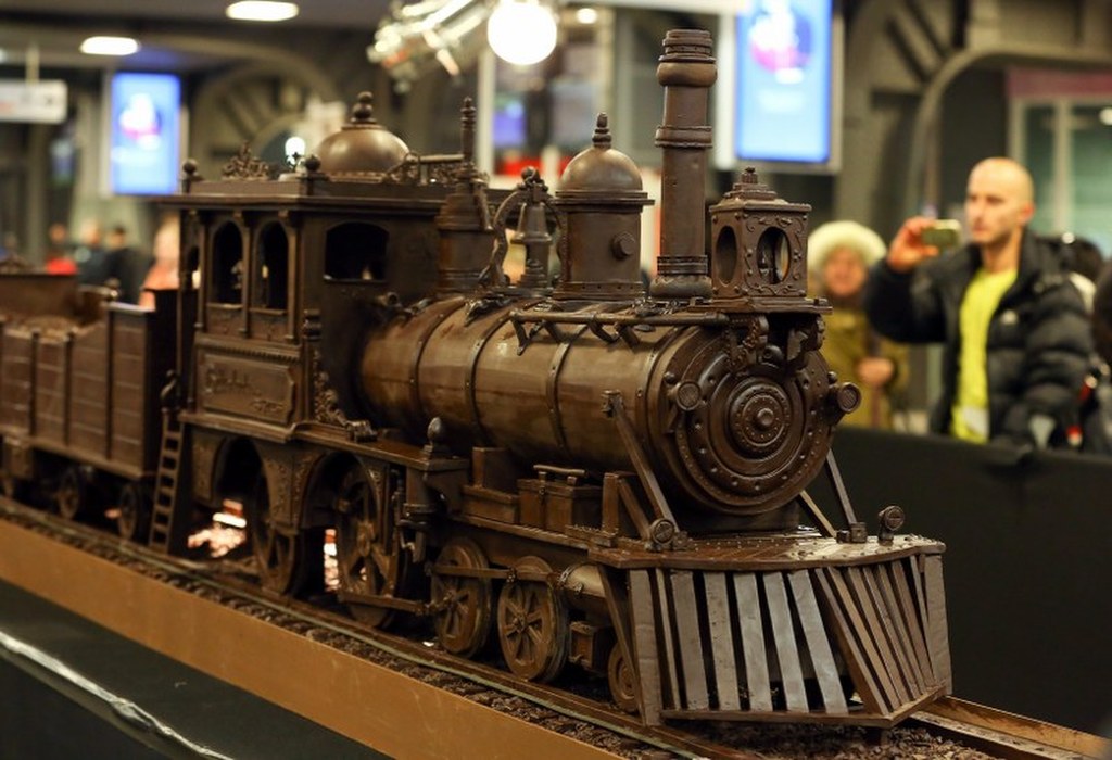 Pociąg ma 35 metrów długości. Jak podkreślają cukiernicy jest wykonany z najwyższej jakości czekolady / fot. Julien Warnand (PAP) / PAP