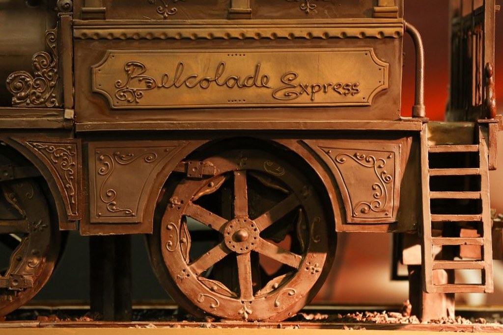 Fragment słodkiego pociągu całego z czekolady / fot. Julien Warnand (PAP) / PAP