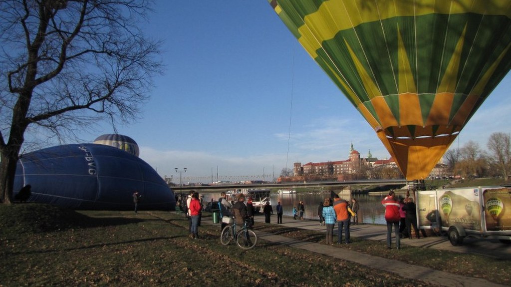 Bulwary Wiślane w Krakowie. Trwa napełnianie balonów / fot. Józef Polewka (RMF FM)